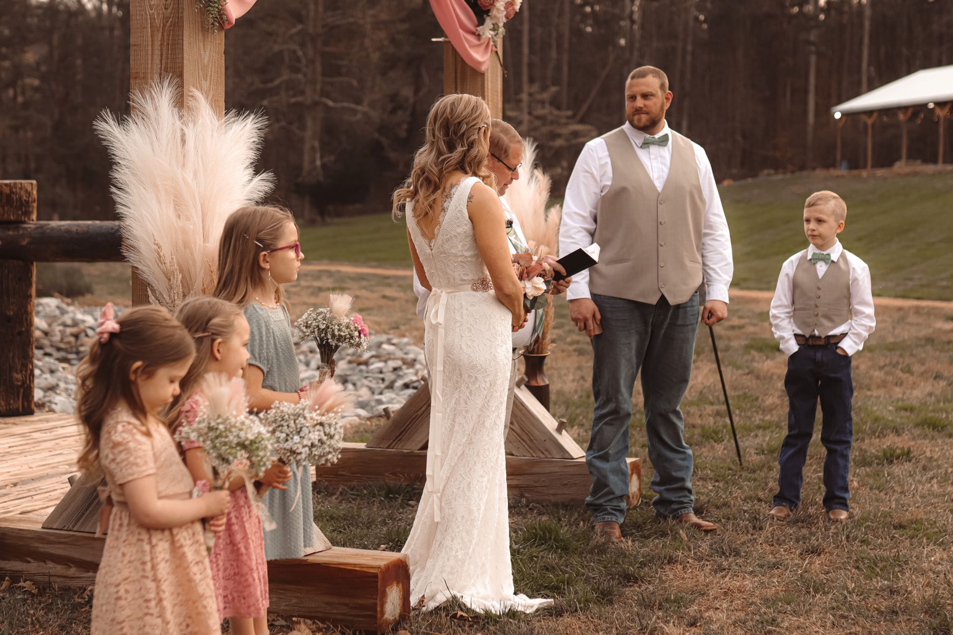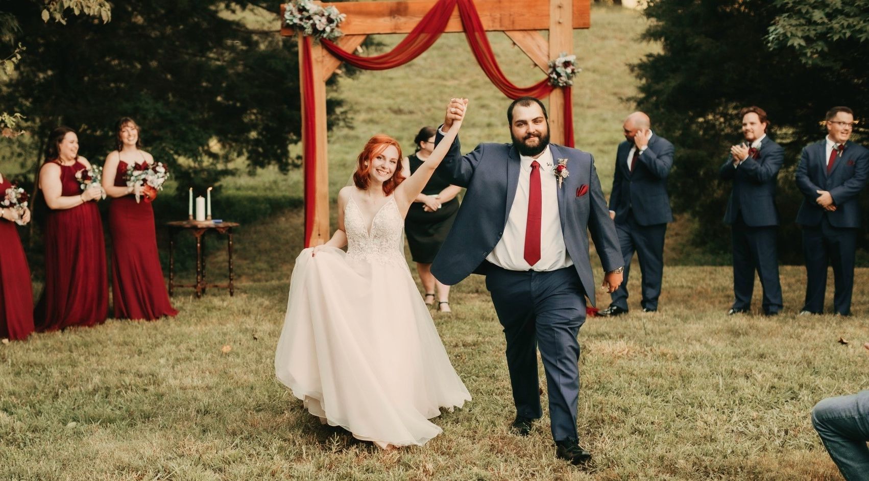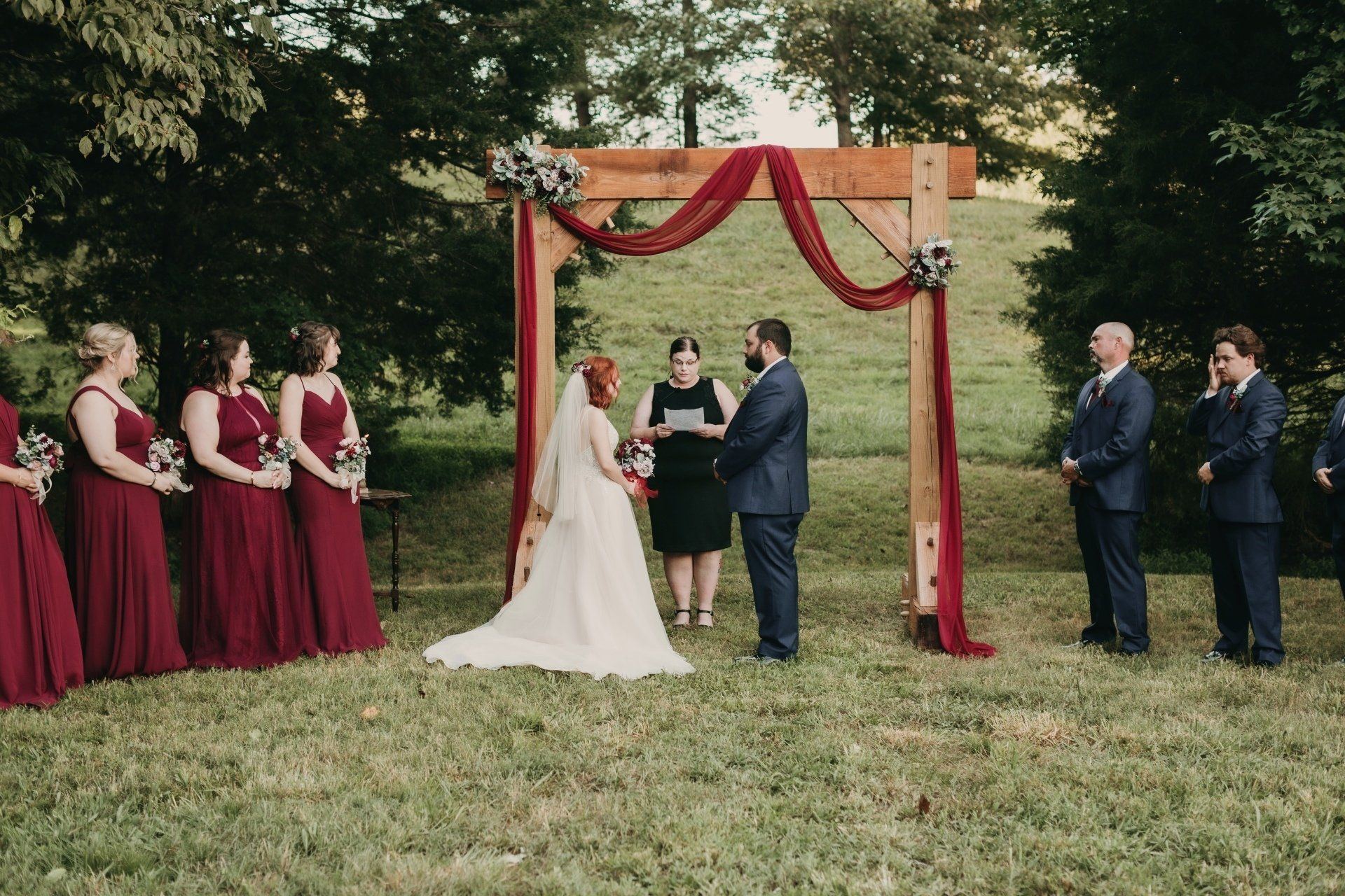 Located over a stream by the pond, one of our newest features at the venue is the bridge! Use the bridge as your aisle, or as a backdrop in your ceremony. Featured below in both spring and fall ceremonies, it's the perfect canvas for any color palette and natural elements like pampas grass or wildflower sprays that will accent the woodsy, scenic background.